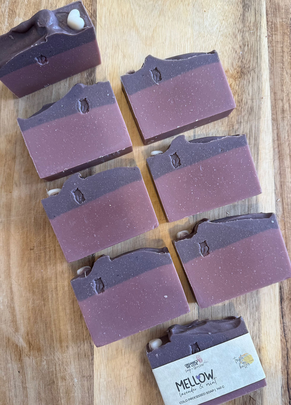 At Organics We Love, every bar is poured in small batches using skin-loving butters, plant oils, omega-rich fats, natural colorants and gentle ingredients your skin will love.